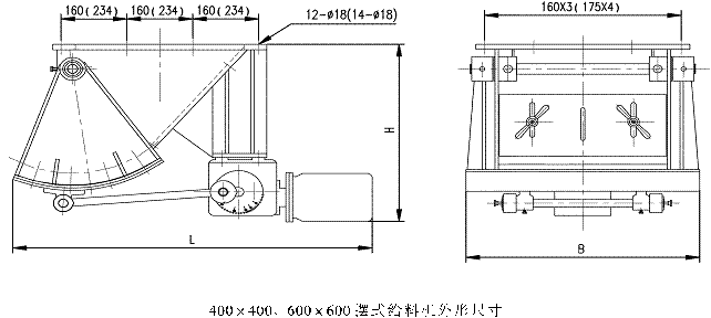 擺式給料機由殼體、弧板、鄂板、驅動裝置、閘板等組成,當電機開動后經減速機、曲柄連桿機拖動弧板做圓弧往返運動,將煤均勻地卸到其他設備上。安裝說明
